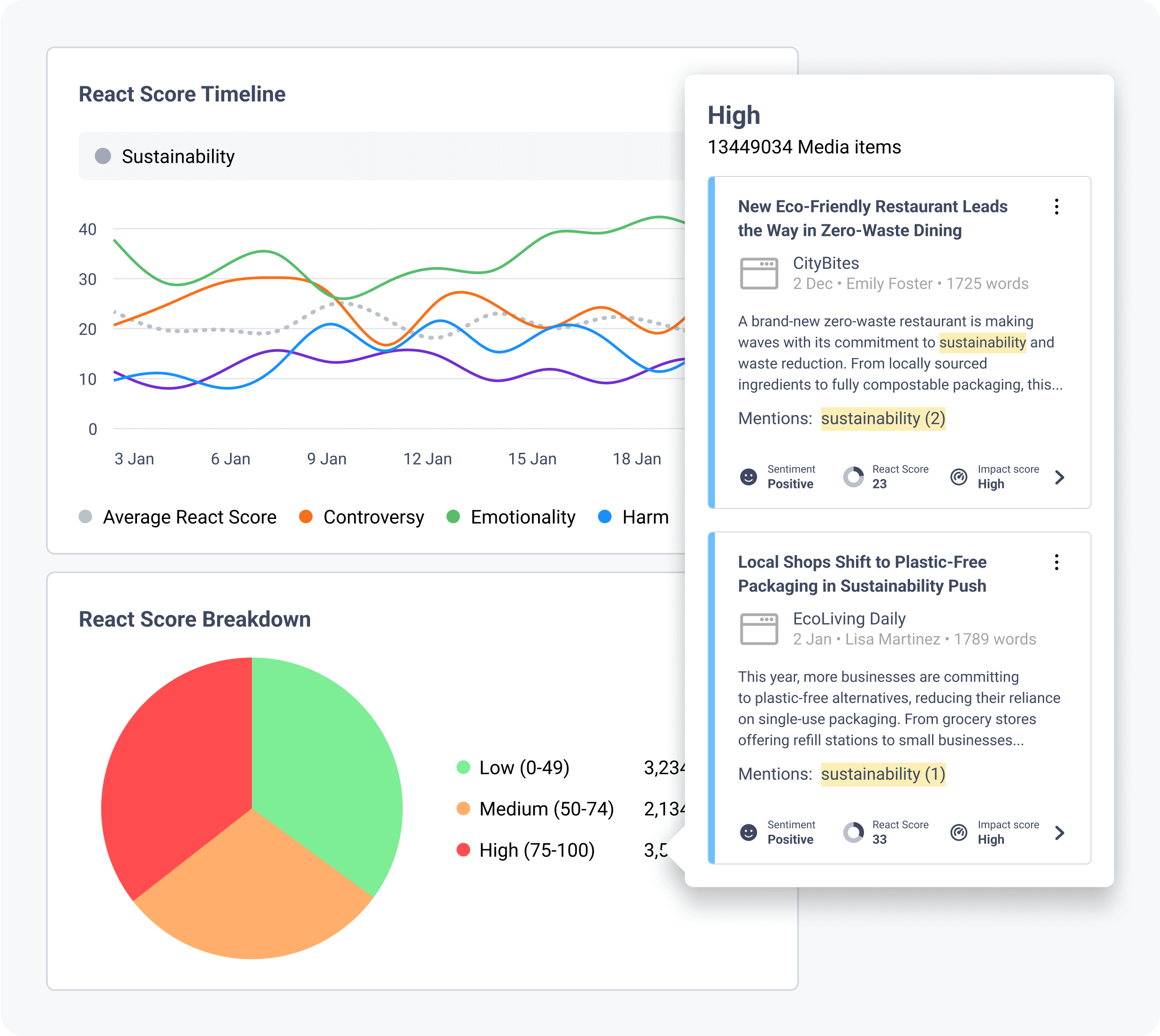 Analyze your media coverage and instantly uncover the insights you need to make more informed decisions. Choose from dozens of interactive data points to show the value of your media coverage and fine-tune your strategy. Easily build branded, exportable, and interactive reports to share with stakeholders. Our intuitive reporting tools draw on comprehensive, real-time coverage.