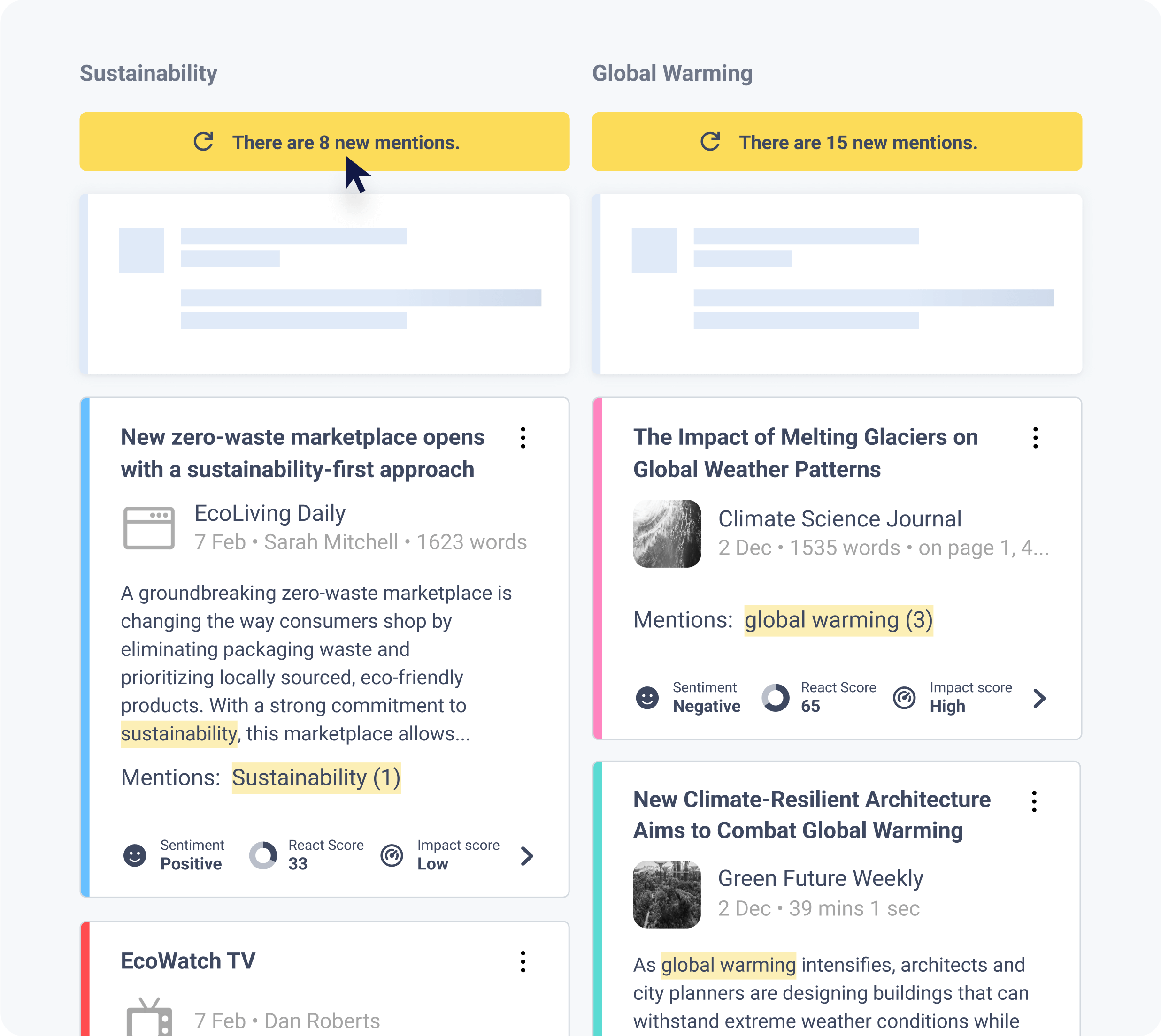 Only CisionOne provides access to the most comprehensive collection of traditional, digital, and premium sources, all in one platform. Gain unlimited insight using Mention Streams, AI coverage tracking, smart alerting, and iOS & Android apps to monitor brand, competitor, industry, and stakeholder coverage in real time.