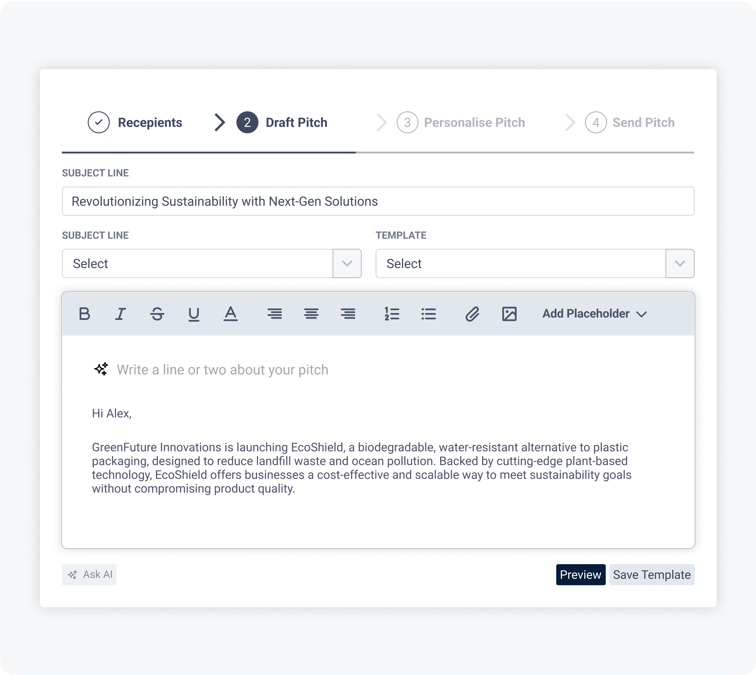 Build compelling media releases in seconds with customizable templates, brand profiles, and a rich text editor. Get instant insight into who has engaged with your release, along with metrics to benchmark your performance, to improve your outreach time and again.